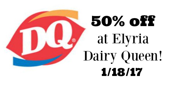 If you live near Elyria, RUN into Dairy Queen where they are hosting a Customer Appreciation Day. Today only (1/18), they are offering up 1/2 off every menu item! This offer is valid through closing at 10pm but many items will run out earlier in the day. Keep in mind that this even includes the ice cream cakes! YUMMO!