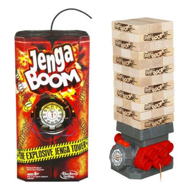 • Game includes 36 Jenga hardwood blocks; toy detonator; stacking sleeve and instructions