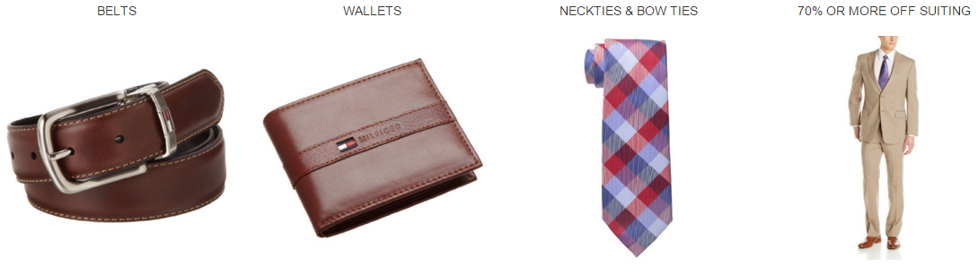 You’ll find Belts,  Wallets, Neckties and Bow Ties, and Suits with prices starting as low as $16.99!