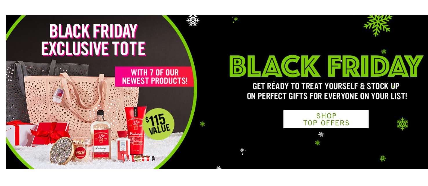 Bath & Body Works is offering up their Exclusive Black Friday Tote Full of Products for ONLY $25 with any $30 order (a $115 value). To snag this use promo code TOTETIME! You can snag the blush tote or the gray tote bag.![]()