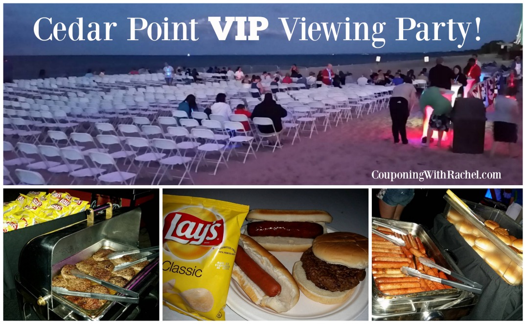 Hungry? Then this is the party for you! At the Cedar Point VIP Viewing Party you can enjoy an all-you-can-eat buffet of hamburgers, brats, hot dogs chips and drinks. It was a perfect dinner after riding some rides! When it was time for the show you can grab a seat right on the beach in a comfy folding chair (keep in mind that seats are limited.). This was great since we had forgotten our blanket. Want to join the party? Tickets for this event are just $20 for adults and $15 for kids 12 & under, guests will eSeating is limited. Guests are encouraged to purchase tickets online in advance.