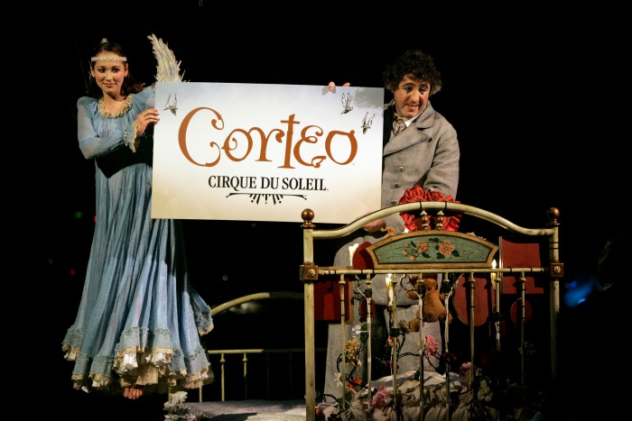 Corteo, which means cortege in Italian, is a joyous procession, a festive parade imagined by a clown. The show brings together the passion of the actor with the grace and power of the acrobat to plunge the audience into a theatrical world of fun, comedy and spontaneity situated in a mysterious space between heaven and earth.