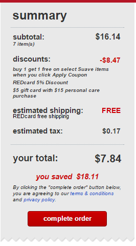 FINAL: $8.07 for six bottles of body wash AND a $5 Target Card!