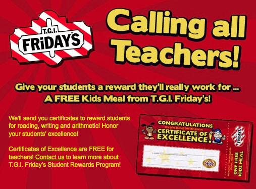 Are you a teacher? You can reward your students with a FREE meal at T.G.I. Friday’s!